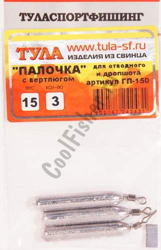 Груз палочка с вертлюжком Вес: 15гр., гп-150 (уп. 3 шт.)