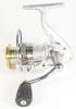 Шестерни силовой приводной пары выточены из бронзы и металлического сплава. Использованы антикоррозийные подшипники и ролик мгновенного стопора (6+1). Ролик лескоукладывателя имеет напыление из нитрид титана и установлен на антикоррозийном шарикоподшипнике High Grade японского производства. Комплектуется второй металлической шпулей.