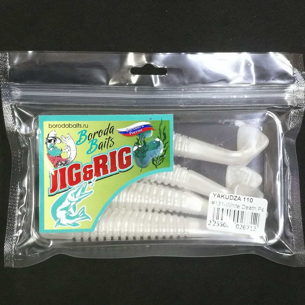 Мягкая приманка Boroda Baits YAKUDZA 110 mm БЕЛАЯ СМЕРТЬ ПЕРЛАМУТР (White Death pearl)