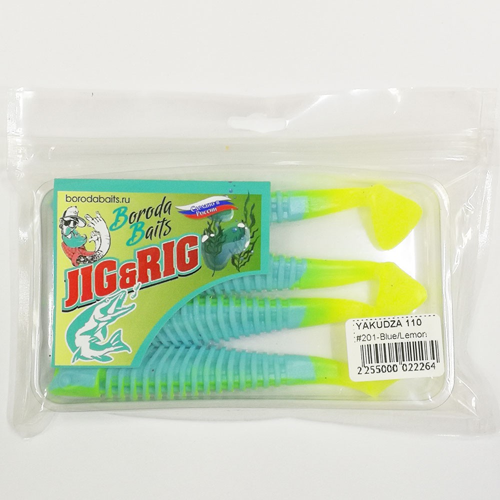 Мягкая приманка Boroda Baits YAKUDZA 110 mm ГОЛУБОЙ/ЛИМОН (Milk Blue/Lemon)