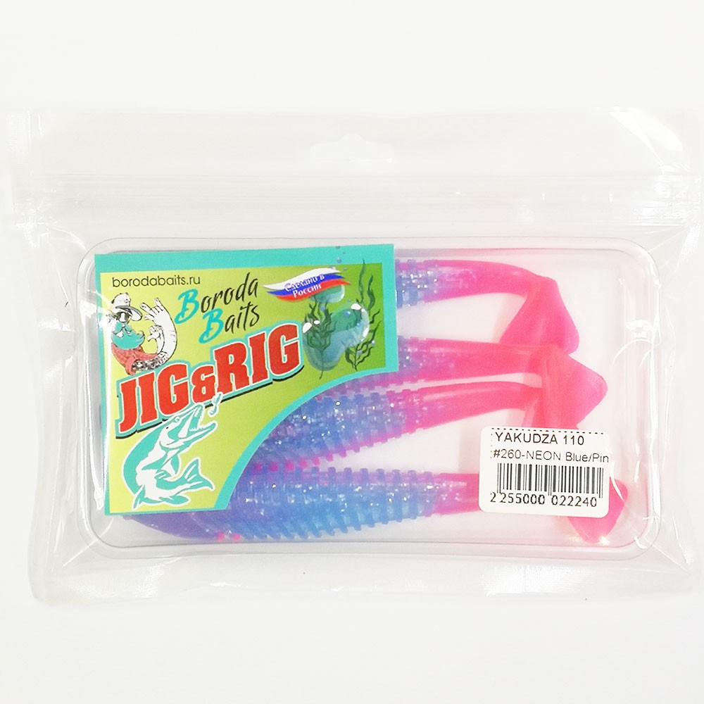 Мягкая приманка Boroda Baits YAKUDZA 110 mm НЕОН Голубой/Ярко-розовый (NEON Blue/Acid Pink)