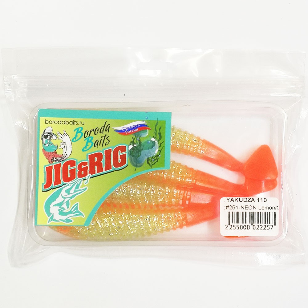 Мягкая приманка Boroda Baits YAKUDZA 110 mm НЕОН Лимонный/Ярко-оранжевый (NEON Lemon/Fire Orange)