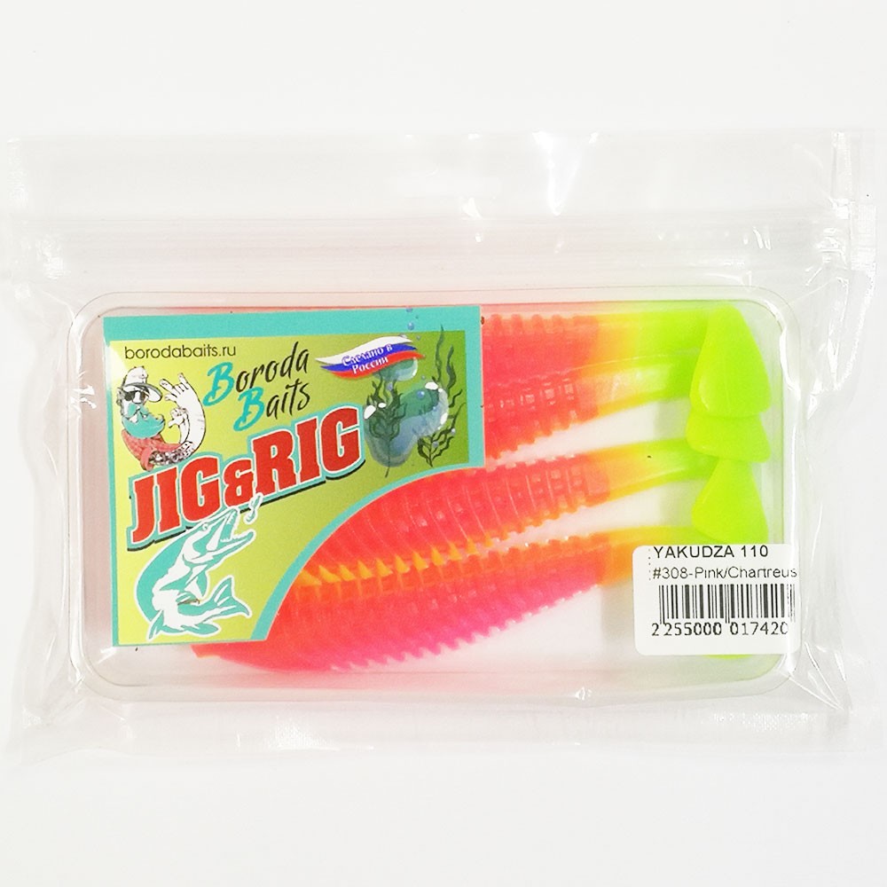 Мягкая приманка Boroda Baits YAKUDZA 110 mm ЯРКО-РОЗОВЫЙ/ШАРТРЕЗ (Acid Pink/Chartreuse)
