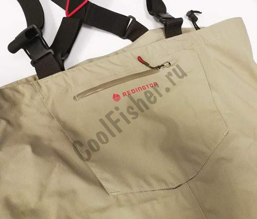 Вейдерсы Redington Palix River Wader изготовлены из трехслойной дышашей мембранной ткани, усиленной на нижней части штанин для увеличения прочности. Регулируются по длине с помощью бретелей и по талии посредством ремня. Имеют два кармана - внешний и внутренний - с водонепроницаемыми молниями YKK. Оснащены встроенной неопреновой защитой от камней и плотными неопреновыми носками.