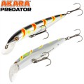 Воблер Predator от одного из популярных брендов Akara. Данный двухсоставной минноу обладает положительной плавучестью, имеет размер 85, 100 и 125 мм, и может быть рекомендован при ловле щуки, окуня, и другой хищной рыбы на средней глубине.