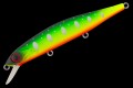 TsuYoki VOLON имеет рельефную фактуру поверхности. В верхней части воблер минноу имеет гладкую форму, по бокам находятся насечки в виде чешуек, а нижняя часть от боковой линии и ниже в виде косых насечек. Передняя часть воблера имитирует голову рыбы и оснащена 3-D глазами. Воблер имеет хороший баланс и магнитную систему дальнего заброса. В качестве оснастки используются тройники Owner.
