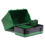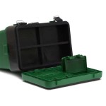 Верхний ярус -2 отделения габаритами 32 х 9,3 х 4,5 см. -4 отделения с крышками на защелках габаритами 14,5 х 8 х 2,6 см. Нижний ярус - 4 отделения с крышками на защелках габаритами14,5 х 8 х 2,6 см.