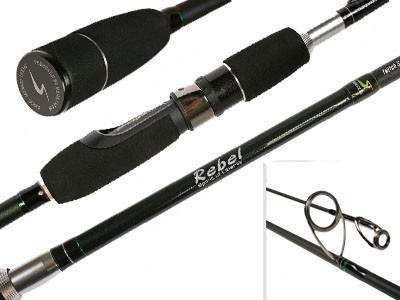 Спиннинги Rebel изготовлены из высокомодульного углепластика и оборудованы укороченными разнесенными рукоятками из EVA, надежными винтовыми катушкодержателями и кольцами со вставками из карбида кремния (SiC).